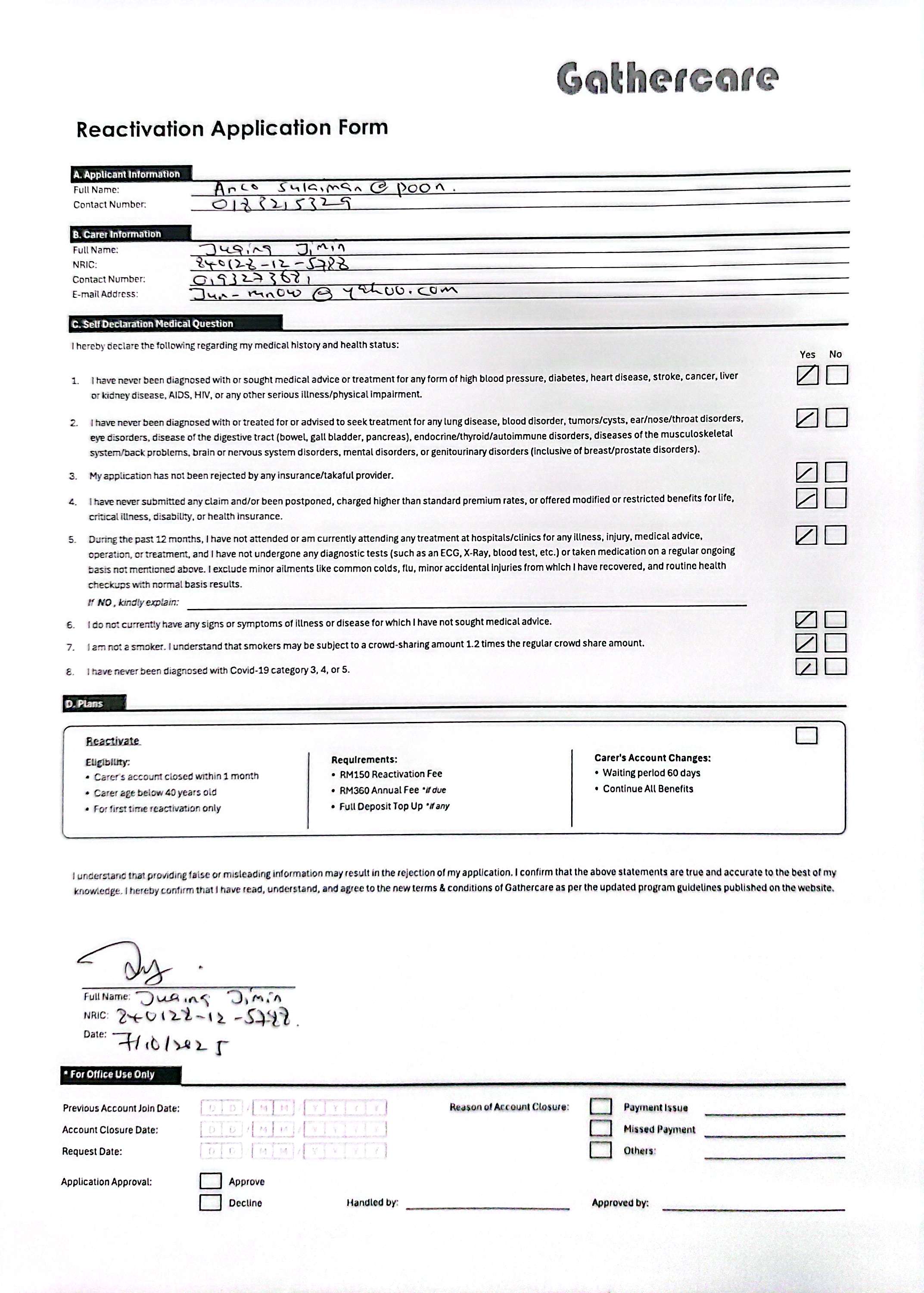 Because we recognize that this year's inflation has put economic pressure on the public, we've decided to reduce the annual fee from RM360 to RM150. We hope this special offer will help our long-time Carers to more easily manage the annual fee, and this offer will continue until you reach the age of 99.